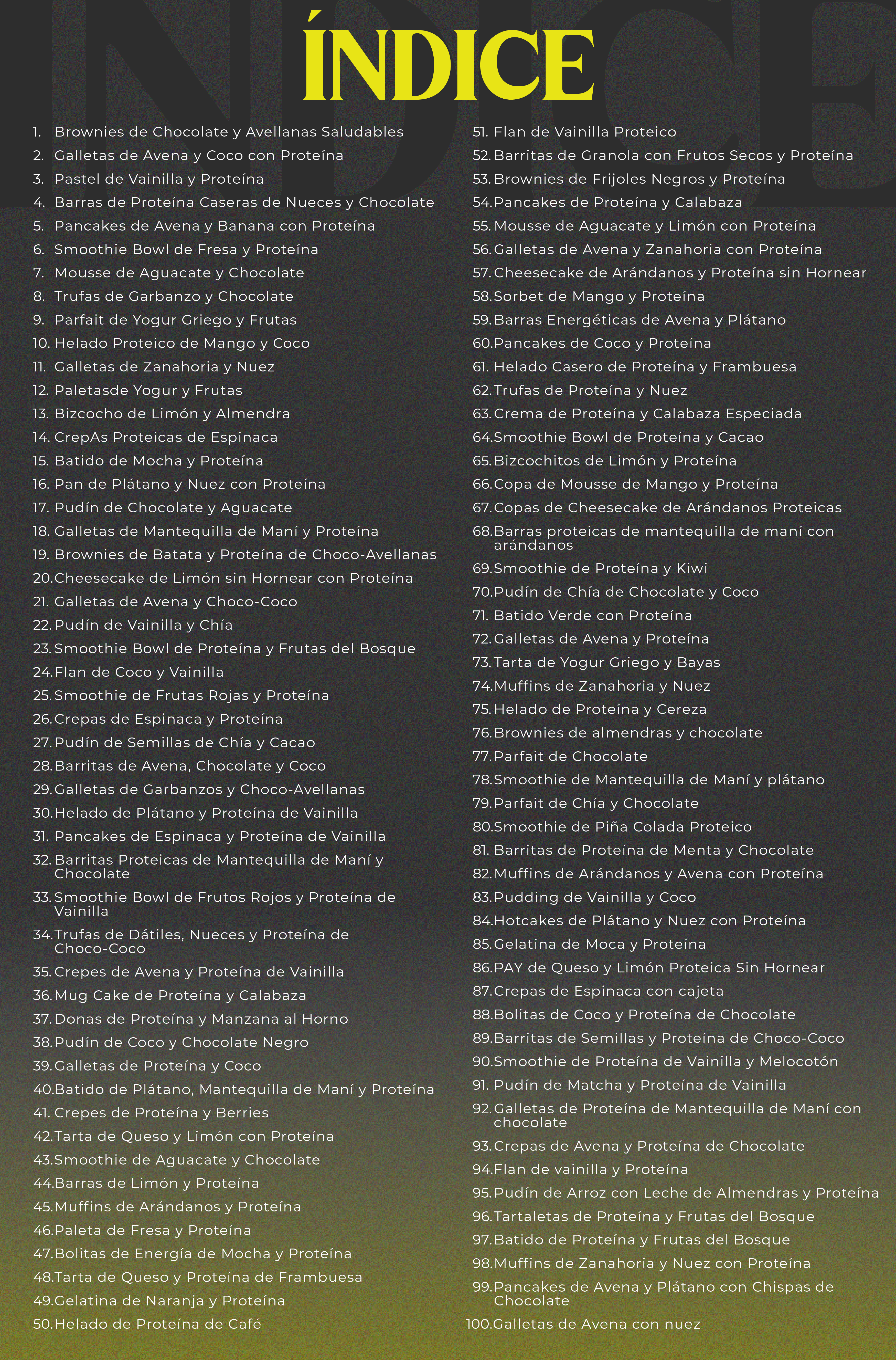Cada receta viene con una detallada descripción de sus macronutrientes, la cantidad de calorías y métodos de preparación paso a paso, asegurándote una experiencia culinaria sin complicaciones y completamente beneficiosa para tu salud.